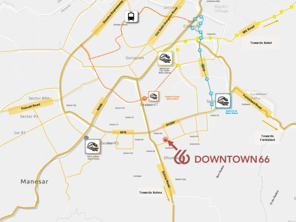 BPTP Downtown Gurgaon is located in Sector 66, offering excellent connectivity to Cyber City, Udyog Vihar, and nearby metro stations, making daily commuting smooth and convenient for residents.