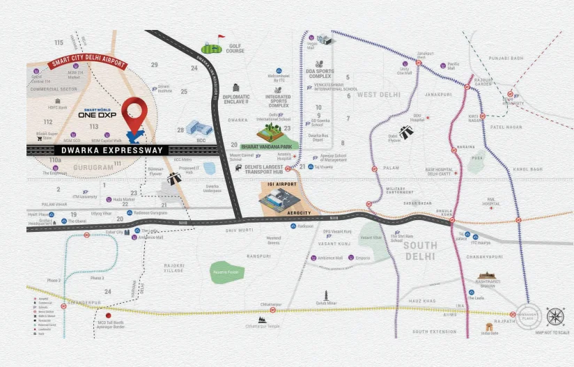 Smartworld One DXP Sector 113 is located on Dwarka Expressway, close to the Delhi-Gurgaon border. The project enjoys easy connectivity to IGI Airport, Dwarka, NH-48, and major commercial hubs.