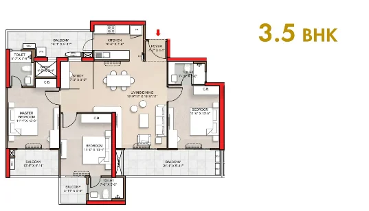 The project offers luxury 3.5 BHK and 4.5 BHK apartments designed with modern architecture, spacious layouts, and premium interiors to provide a high-end living experience.